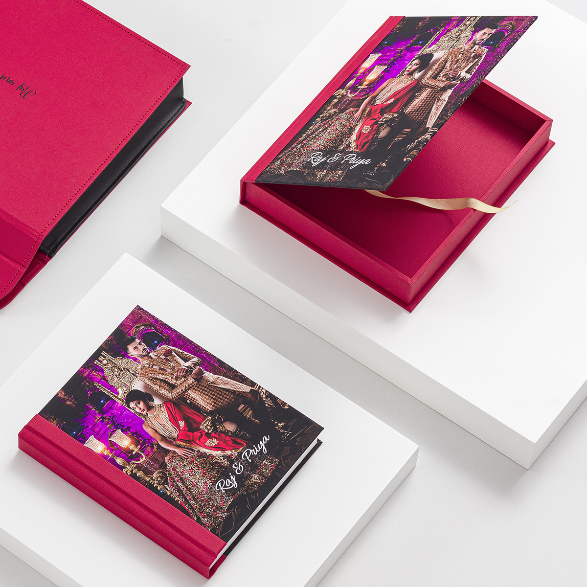 Print Wrapped & linen boxes are individual, handmade boxes custom fitted to the album. Depending on the style box chosen, our boxes can be personalized by embossing, UV printing, and Etching.